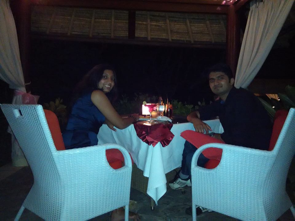 The sun had finally set and we went back to our hotel to get ready for our special dinner that we had booked at an Italian restaurant nearby. The restaurant – La Cucina – was part of the hotel called Discovery Kartika Plaza and was rated very high for its food and service. We managed to get a private gazebo (candle-lit) overlooking the beach. The dinner was quite memorable, and the restaurant did justice to our special day with the quality of food and the service it offered. This was by far our most adventurous and memorable anniversary day yet.