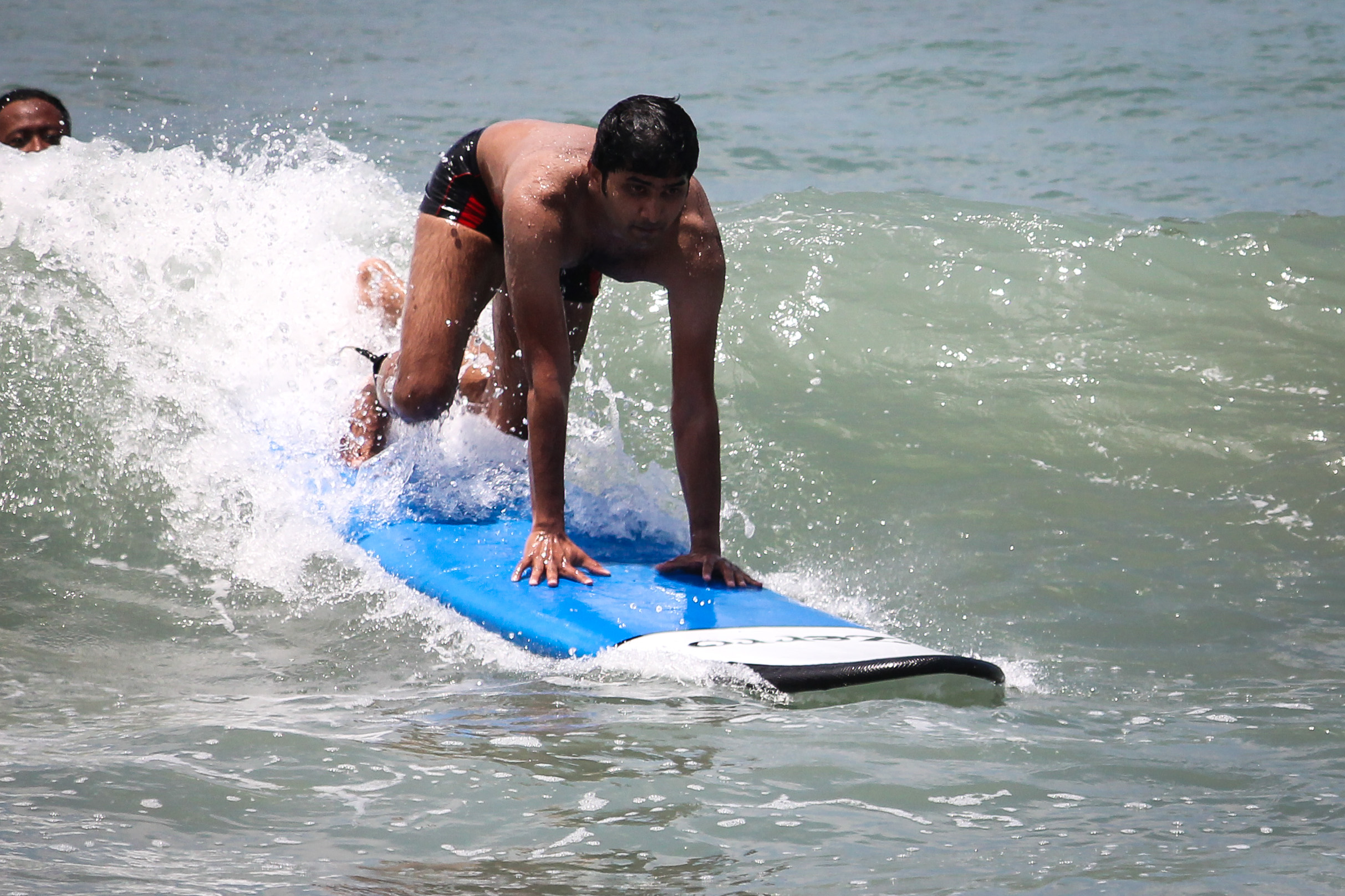 The next day, after an awesome and heavy breakfast, we decided to check out the Kuta beach and also some water activities. Kuta beach is famous for surfing and so I decided to give it a try. There were a bunch of locals on the beach with surf boards waiting to train tourists like us. We struck a deal of 1 hour surfing lesson for 150,000 Rupiah. My wife was not feeling too adventurous and instead, decided to rent a sunbed (for about 50,000 Rupiah) and wait while I surf it out. My instructor gave me a few tips on the technique to be followed and made me practice the manoeuvres a couple of times before we hit the waters. As I ventured into the rough sea with him with a surfing board in hand, the excitement in me was quite palpable – little did I know that time of the difficulty of it all. After multiple attempts of carrying the heavy surf board into the sea, waiting for the wave to hit me, trying to ride on the wave, drinking some sea water in-between and finally ending up disoriented on the sand, I finally called it quits 30 mins into the exercise. Though, it was quite an experience and I would definitely try my hand at it again if given a chance. Tired and feeling all salty, I went back to my wife only to find her too busy getting her hands manicured – quite relaxed and in a complete state of bliss! We then decided to head back to the hotel and get some rest.