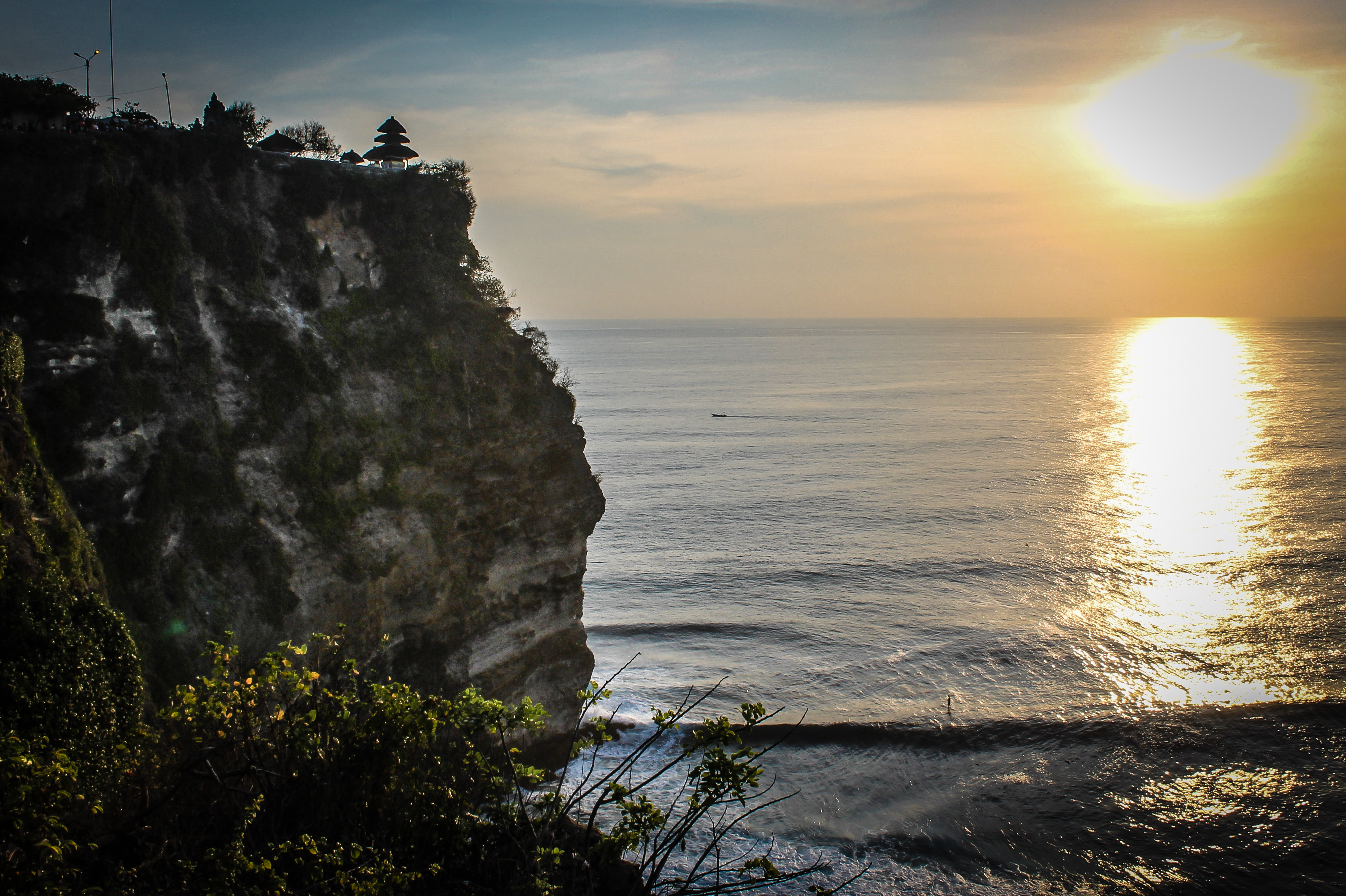 It was about 4 in the evening and we synced up with our friends again with the plan to visit the Uluwatu temple and the surrounding area. It took us about an hour to reach the temple. This temple, like Tanah Lot, is another sea temple built at the edge of a cliff projecting into the sea. The temple itself is nothing to write home about but the view of the cliff from the side is something to die for, especially during the sunset. You can catch the view of the cliff from either side and so, do check out both views. Beware of the rouge monkeys who try to snatch any item remotely resembling food, including water bottles. The temple complex also hosts Balinese dance performances every evening for 100,000 Rp which apparently is good. We decided to give it a pass since we were short on time. The sea water below the cliff seemed crystal clear and so any beach in general around that area is something to check out. After the sunset, we headed to one of these – the Padang Padang beach. Unfortunately, we were a bit late to the place and it was too dark for us to make out the beauty of that beach.