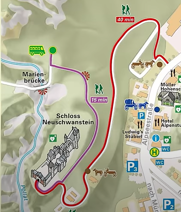 The bus dropped us off at a point which was close to the famous bridge “Marienbrucke”, the famous viewing platform of the castle. The views of the castle from this point is amazing and undoubtedly the best place to see the castle in its full glory. A short climb up further from the bridge will take you to another viewpoint with views from a higher vantage point. From the bridge, we had to walk for 10 mins down on the other side to reach the castle itself.