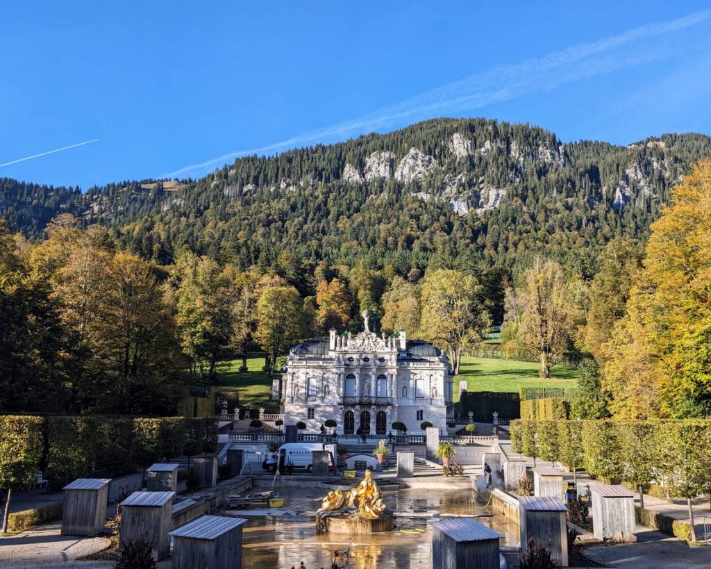 After lunch, we decided to visit the Linderhof Castle, another famous castle in the area built by the same king – King Ludwig II. This palace is a bit far off from Neuschwanstein and the road also goes into Austria before getting back into the German region. Make sure to have your special Vignette for the car before you enter Austria.